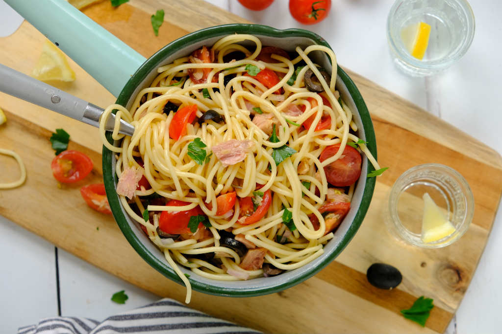 Stappen om een spaghetti met cherry tomaat en tonijn te maken: