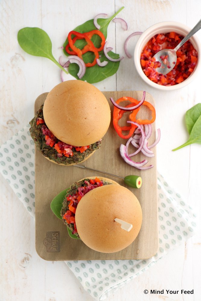 Een goede vegetarische burger...? Ik vind het nog lang niet altijd makkelijk... Bij een burger heb ik namelijk nogal wat eisen! Er moet smaak aan zitten, een goede bite, en een fijne structuur. Nou dat valt nog niet altijd mee! Maar het is weer gelukt hoor, deze spinazie linzenburgers zijn helemaal goed gekeurd! Lekker op een broodje, of bij een frisse salade.