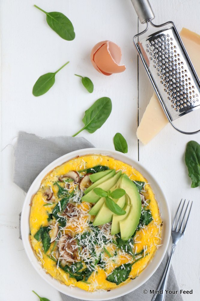 Green up! Dat is mijn motto voor januari. Want om eerlijk te zijn kan het bij mij ook allemaal wel weer wat groener…. Al weer ruim 4 jaar geleden startte ik mijn blog omdat ik zo enthousiast was over mijn nieuw ontdekte eetpatroon. Lekker veel groenten toevoegen, daar werd – en word – ik heel blij van. Maar de afgelopen tijd stond ik daar zelf ook eigenlijk ver van af. Welke groenten? Ik was ze een beetje vergeten… Tot dat ik vorige week was omgevallen en ineens een dikke verkoudheid te pakken had. Ja natuurlijk was ik mezelf voorbij gelopen in alle drukte… Tijd om weer goed voor mezelf te gaan zorgen en de vitamientjes weer toe te voegen. Lastig hoeft dat niet te zijn, deze spinazie omelet was mijn lunch en ik werd er zo gelukkig van!