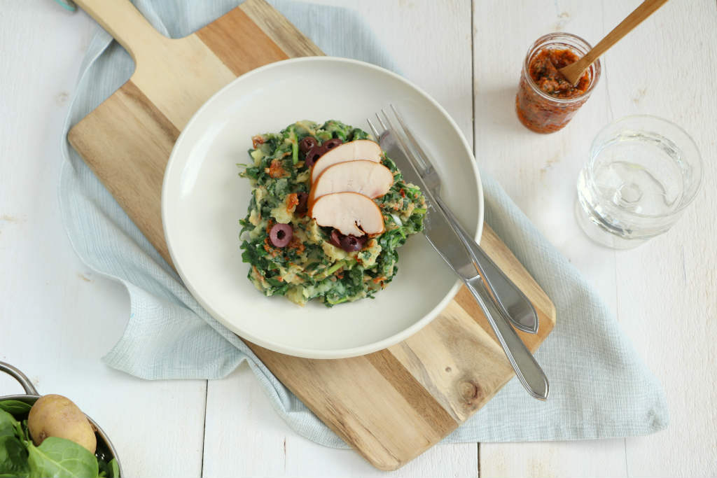 Een stamppotje in de zomer? Tja waarom niet! Natuurlijk is dit een lichte versie met frisse smaken. Het afgelopen weekend zijn wij verwend met mooie dagen. Je hebt waarschijnlijk veel buiten gegeten en de bbq heeft overuren gemaakt. Des te meer tijd om vandaag weer “normaal” te eten. Deze spinazie stamppot met gerookte kip past hier perfect bij.