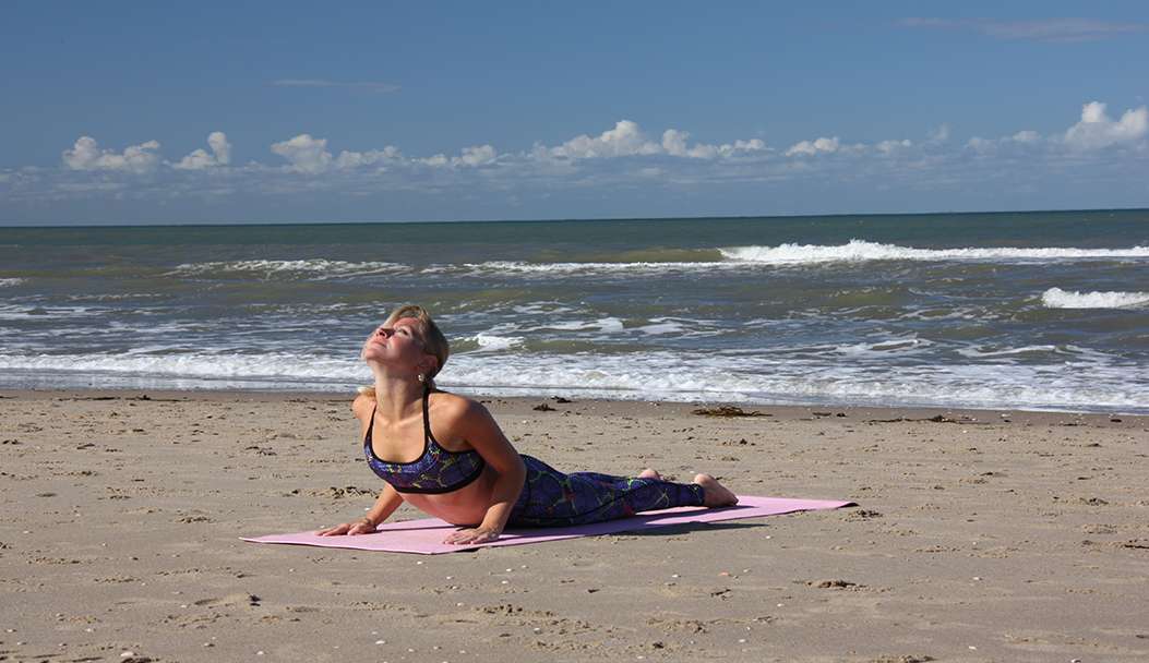 Dit is een basishouding: achterover buiging vanuit de buikligging. In yoga jargon heet deze houding “Bhujangasana”. Bhujanga betekent slang. Bhuja staat voor arm of schouder en ang staat voor ledemaat. In de Cobra ligt de focus op de wervelkolom, armen én ook de benen. Veel mensen denken dat de benen passief zijn in deze houding, maar met name de hamstrings kunnen actief zijn, net als de grote bilspier.