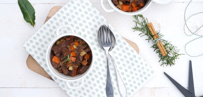 Ik heb je al vaker verteld dat zowel Simon als ik gek zijn op koken! Om de beurt maken wij de avondmaaltijd klaar, en geen van ons twee vindt het een probleem om te koken. Nee, we vinden het juist leuk! En in het weekend is er gewoon wat meer tijd voor. Want een beetje stoofpot moet toch echt wel minstens 1,5 uur pruttelen. Op een zondagmiddag geen probleem, maar als ik een keer doordeweeks tijd heb dan maak ik ook graag een stoofschotel klaar. Simon kwam afgelopen week thuis met 500 gram runderlappen van onze vaste slager. En oh, wat had ik zin in een stoofpotje!