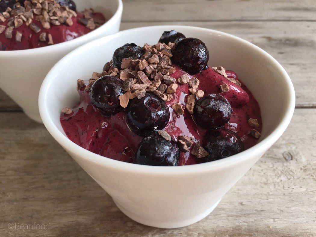 Even terug naar de super snelle bosbessensorbet. Dit ijsje is fris, zoet, koud (haha), erg lekker, gezond én binnen drie seconden gemaakt. Het perfecte toetje wanneer je zin hebt in ijs maar niet meteen een bak Ben & Jerry's tevoorschijn wil toveren.