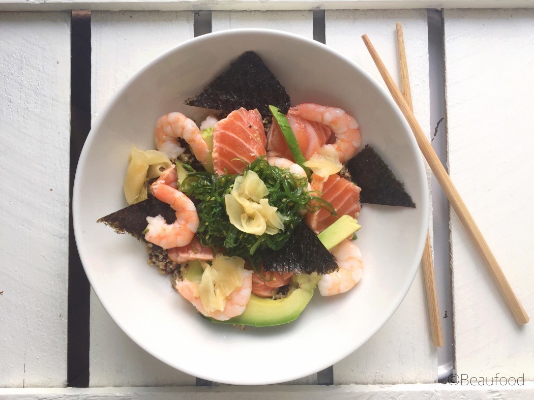 Even iets anders, WAAROM zijn er op zondagmiddag geen sushi restaurants beschikbaar die thuis bezorgenl? Er zijn echt wel mensen die tussen de middag (vooral mensen zoals ik met een kater) die zin hebben in een plateau verse sushi.. Ja er is wel een enkeling beschikbaar maar die bezorgen dan ook hamburgers, patat, kebab, spareribs én pasta's. Dan lijkt het me sterk dat de sushi lekker is, laat staan vers. Dus ben jij toevallig een sushi restauranteigenaar? Ga open op zondag :D Ik zal een trouwe klant zijn. Tot die tijd kies ik voor de makkelijke weg en eet ik mijn sushi in een grote bowl. Gewoon een kom dus maar een bowl klinkt veel spannender.