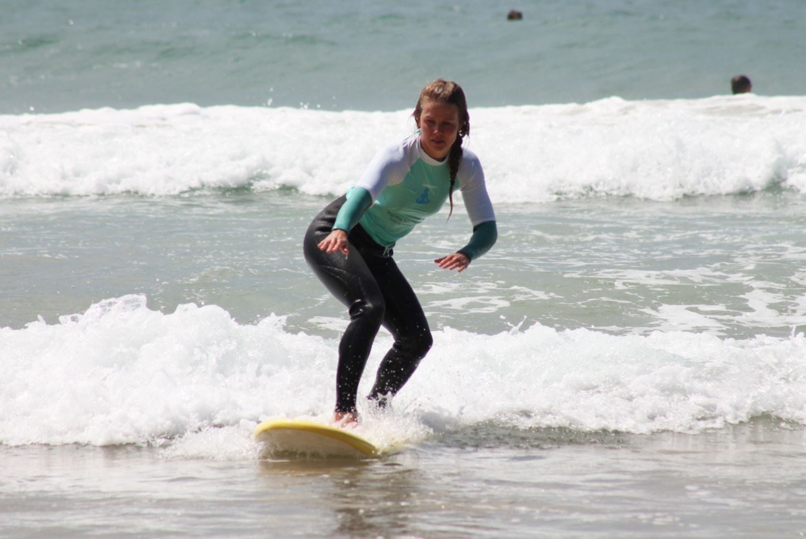 Surfers ervaren net als yogi’s een volledige harmonie met de elementen die moeder natuur ons brengt, in dit geval water. Wanneer een keer hebt gesurfd zul je dit gevoel herkennen: rust en vrede terwijl je op je surfplank zit te wachten op de perfecte golf. Kijkend naar de horizon, genietend van de zon terwijl de golven omhoog en omlaag deinen. Wanneer de perfecte golf eraan komt, start je met peddelen op het juiste moment, spring je op het board en glijd je zo richting het strand. Nadat je de perfecte golf hebt kunnen pakken, werk je je direct weer een weg terug de oceaan in om je volgende golf te pakken. Dat gevoel van blijheid en tevredenheid is een gevoel dat je ook met yoga kunt ervaren.