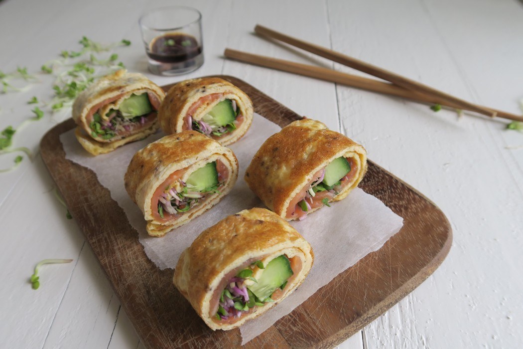 Laatst blogde ik over mijn lievelingsontbijt van dit moment, namelijk rozemarijn crackers met geitenkaas, avocado en honing. Maar deze snelle sushi van ei en gerookte zalm schopt ze linea recta van de eerste plaats. Wie had gedacht dat zo'n simpele combinatie ZO lekker kan zijn? En dan ook nog eens in de vorm van sushi. Real happy food. En dit gerecht kan natuurlijk ook prima als lunch.