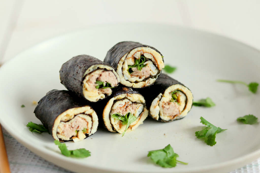 Mijn laatste lunchrecept dateert van half november vorig jaar. Hoog tijd om hier verandering in te brengen. Dinsdag is immers de lunchdag op de blog. Gisteren liep ik wat doelloos rond in de keuken op zoek naar iets lekkers. De norivellen moeten op en wat kan er mee gemaakt worden? In mijn herinnering kwamen de omelet sushi wrapsvoorbij geflitst. Toen was de keuze snel gemaakt om sushi wraps met tonijn te maken.
