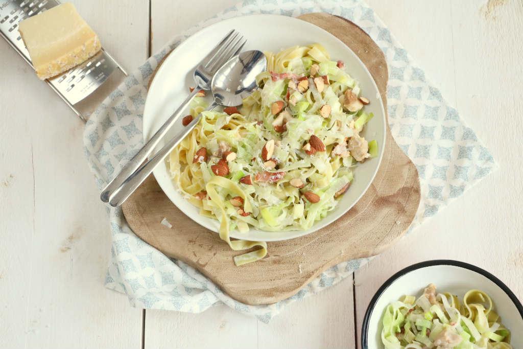 De pasta met romige preisaus past helemaal in de categorie: makkelijke maaltijd. Wat is het niet fijn om met 6 ingrediƫnten (zout en peper niet meegerekend) een gerecht in elkaar te draaien.