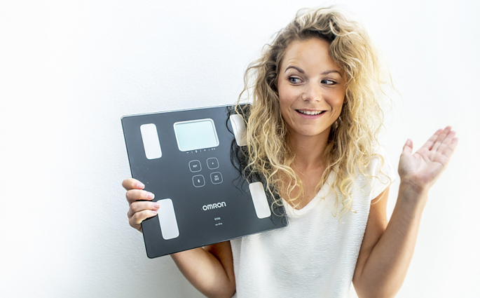Gebruik de weegschaal op een manier die positief voor je werkt. Je kan de weegschaal prima gebruiken als reality check: “Oei, iets te veel gegeten op vakantie!” Of: “Hé wat leuk om te zien dat mijn spiermassa is gegroeid sinds ik de Smoothie Bootie Challenge ben gestart!”. Waar de weegschaal zeker niet voor bedoeld is, is voor het bepalen van jouw eigenwaarde! Mijn advies is dan ook: ga er niet té vaak op staan. Als fitgirl snap ik dat je je progressie bij wilt houden, maar daarvoor is 1 keer per week op de weegschaal staan echt meer dan voldoende. Zorg ook dat je méér meet dan alleen je gewicht. Hoe? Met de Omron VIVA weegschaal en Evolv bloeddrukmeter!