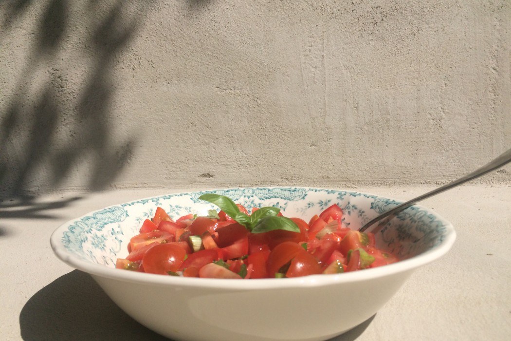 Easy does it! Deze tomaten avocado salade is eenvoudig lekker en zo klaar. Heerlijk als bijgerecht op een zwoele zomeravond. Bijvoorbeeld bij de barbecue of lekker als extra side dish.,