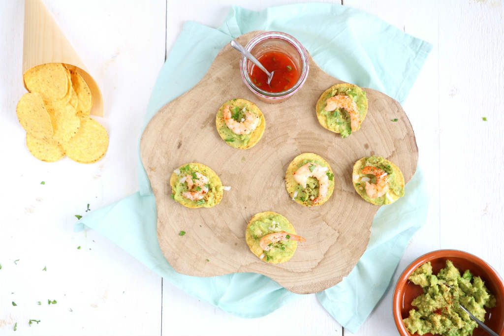 Tortilla chips bestaan uit 3 ingrediënten: maïs, olie en zout. De beste keuze in heel chips land wat mij betreft. Natuurlijk hoort hier avocado bij. Ik ben gek op deze groene vriend. Eigenlijk wilde ik zelf guacamole maken, alleen was ik een beetje lui. De garnalen zijn gemarineerd in een zoete chili saus waardoor dit hapje voldoende smaak heeft. Voldoende? Euh meer dan voldoende.