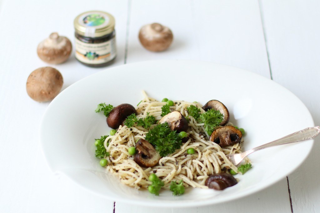Als ik een signature dish zou hebben, dan zou dat deze truffel spaghetti met kastanje champignons zijn. Bij dit gerecht heb ik zoveel mooie herinneringen. Het begon allemaal toen ik werkzaam was bij Brasserie 1560 in mijn oude woonplaats IJsselstein, mijn eerste baantje in de horeca waar ik zo’n vier jaar bleef plakken. De keuken, gezellige gasten, mijn lieve collega’s, het menu, doorrollen naar de kroeg wanneer we klaar waren met werken, de goede gesprekken aan de bar, de kooklesjes van de koks. Can we go back :D En niet te vergeten de truffel pasta. Want hoe vaak de kaart ook veranderde, dit gerecht stond er altijd steevast op. Altijd een succes en als we tijdens drukke dagen geen tijd hadden voor personeelseten mochten we wat van de kaart kiezen en dat werd dan vaak truffel pasta. Heeerlijk. Toen de tijd van het thuis-koken-met-vriendinnen tijd aanbrak zette ik dit gerecht ook vaak op tafel. Het is zo simpel en super smaakvol. Origineel is het een pasta met veel room maar om het toch enigszins gezond te houden liet ik dat in dit recept weg, voegde doperwten toe en verving ik de gewone pasta door een glutenvrije variant.