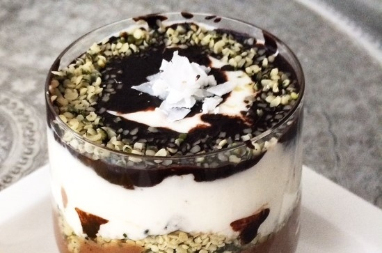 Doe de magere kwark, banaan en de kokos snippers in de blender en mix dit tot een geheel. Schep de helft van het mengsel in een aparte kom en zet dit apart. Voeg de avocado, dadel en rauwe cacao toe aan de blender en laat het geheel even goed mixen. Door de avocado en de dadel zal het een heerlijk dikke chocolade mousse worden! Schep de chocolade mousse in een glas. Het glas zal ongeveer tot de helft gevuld zijn. Hierover heen strooi je een theelepel hennepzaad. Pak het kokosmengsel en schep ook dit in het glas. Verwarm in een klein pannetje de kokosolie. Let goed op: de kokosolie zal snel gesmolten zijn, voeg daarna de rauwe cacao toe en roer dit goed door! Evetueel kan je hier een klein beetje stevia of honing doorheen doen zodat het wat zoeter wordt. (Mocht je nog niet bekend zijn met rauwe cacao is dit op het begin wel aan te raden.) Zodra dit een glad geheel is, giet je het als topping in het glas. Strooi als laatste nog een theelepel hennepzaad erover et voilà !
