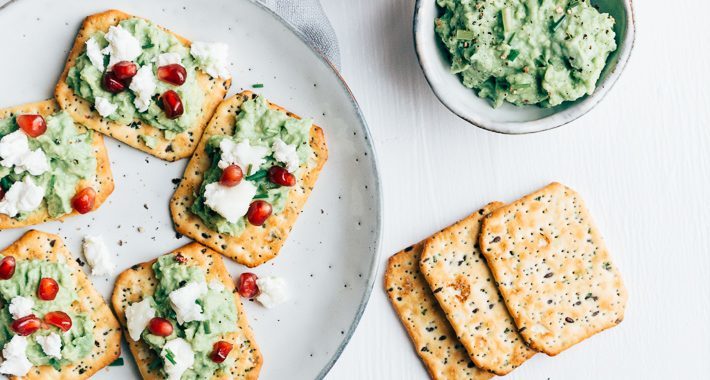 En dan is het nu tijd voor mijn creatie. De TUC met avocado, geitenkaas en granaatappelpitjes.