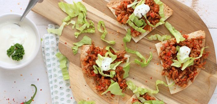 Het is weer fastfood friday, yes!!! Dat is een tijd geleden zeg, dat ik op vrijdag een makkelijk fastfood recept plaatste. De laatste keer was in juni, daarna zijn we de zomervakantie ingegaan. Ik vond het dus wel weer eens tijd voor een weekendbite, want op vrijdag kook ik meestal niet zo uitgebreid. Nu kun je bij mij een Turkse pizza wrap met knoflooksaus ongeveer om de hoek halen bij een geweldige Turkse bakkerij, maar zelf maken blijft toch het leukste. Daarmee weet ik dan niet of het een échte Turkse pizza mag heten, maar dat zal vast wel goed zijn.