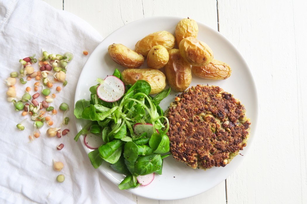 Gek op burgers? Ben je vegetarisch? Of ben je een vleesliefhebber die toch vaker een gezonde keuze wil maken door vlees af en toe te vervangen door groenten of peulvruchten? Dan zijn deze burgers echt iets voor jou! Deze lekkere en súper gezonde burgers van peulvruchten kiemen (gewoon verkrijgbaar bij de meeste supermarkten) heb je binnen tien minuten gemaakt en zijn heerlijk als avondeten met krieltjes uit de oven en een salade. Of maak er een hamburger van door ze op een broodje te serveren met tomaat, ui en avocado.. Gebruik rode ui in plaats van gele, die hebben net even iets meer pit. Voor kids zijn deze burgers ook a big party op tafel door de kleurtjes die erin zitten van de verschillende peulvruchten kiemen.