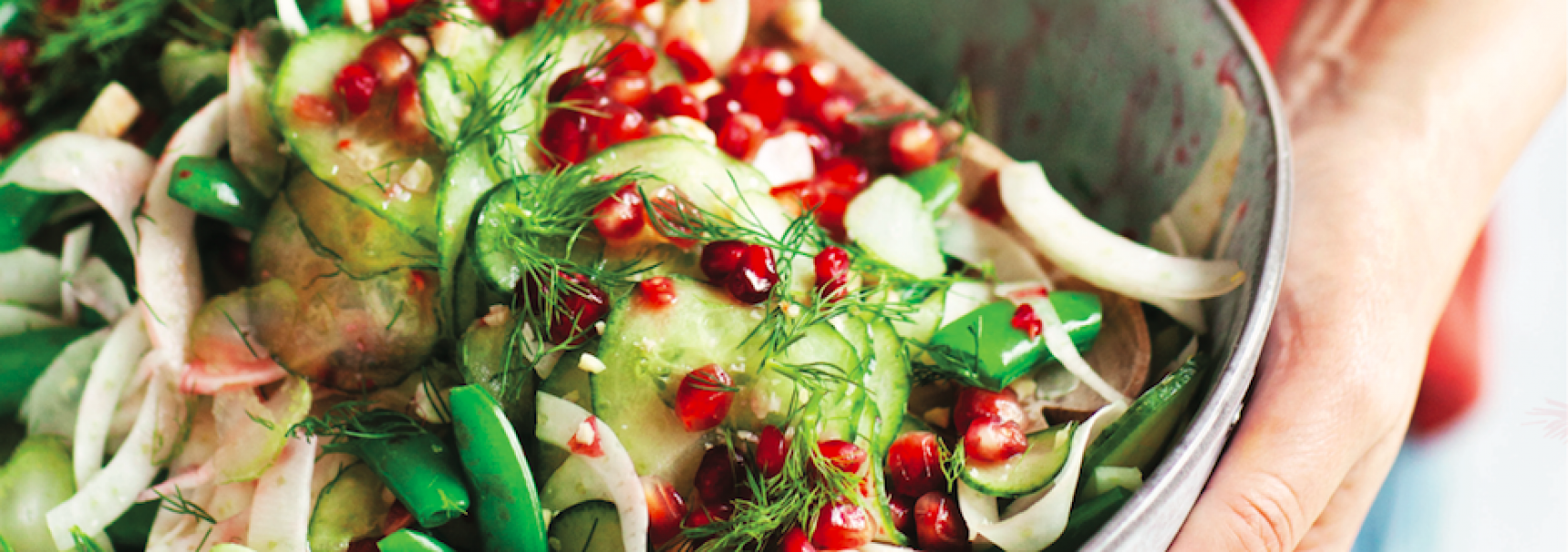 De granaatappel in de dressing werkt verkoelend (heel fijn tijdens de hitte deze zomer) en is goed voor het bloed, de lever én de galblaas. Ook helpt het als je last hebt van spijsverteringsproblemen. Want bij Ayurveda geldt: een gezonde spijsvertering zorgt voor een gezond lichaam én een gezonde geest.