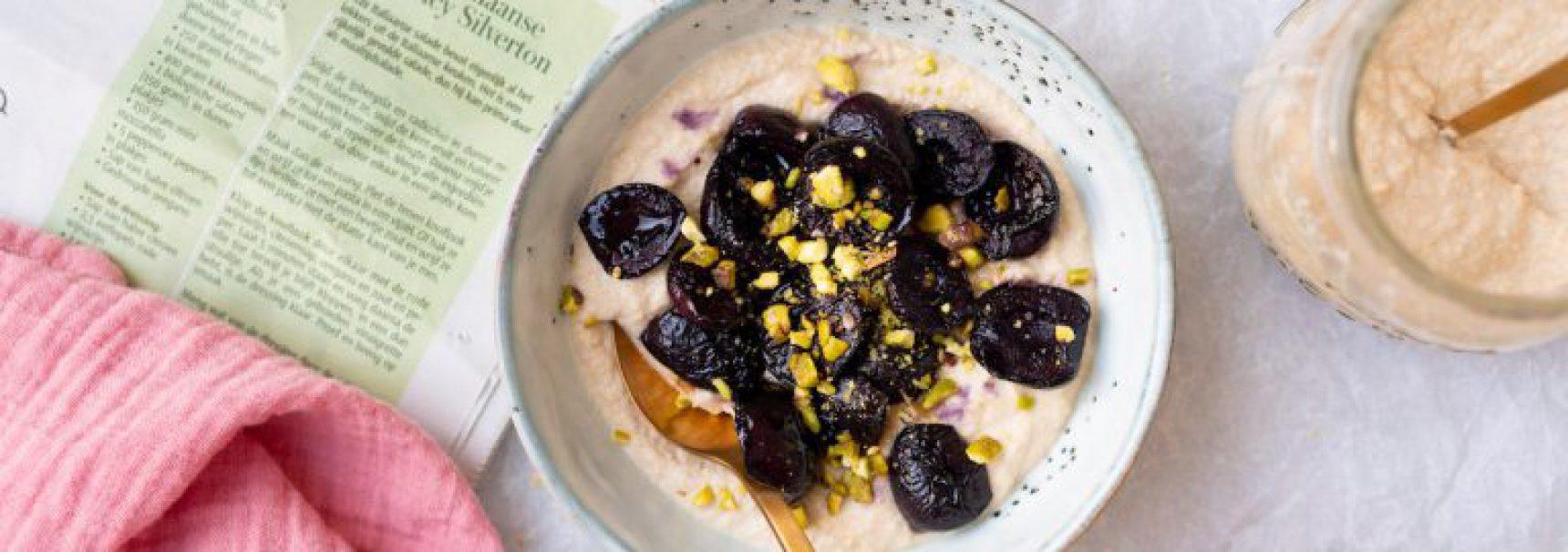 Vega Vrijdag: zelf cashewyoghurt maken (met gegrilde kersen & pistache)