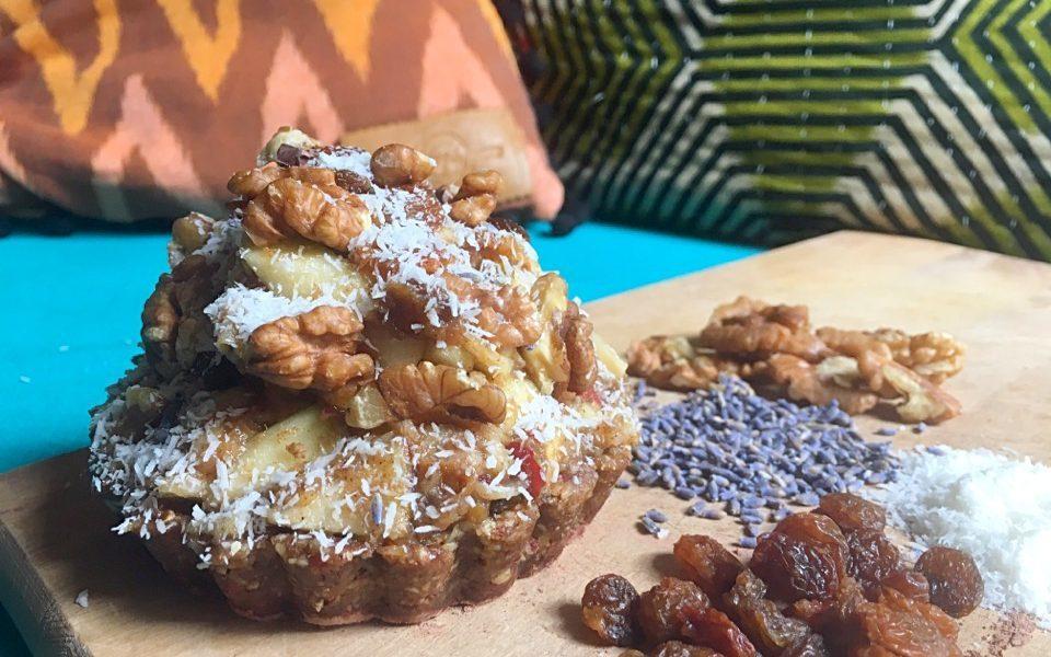 Tijdens de workshop leerde Aleid me hoe je een vegan appeltaartje maakt. Een bodem van nootjes, vulling van appel (uiteraard) een daarbij ook nog een heerlijke karamelsaus op basis van dadel. Een old school punt appeltaart vervangen door deze? Nee joh, niet doen. Dit heerlijke taartje maken en proeven hoe idioot lekker het is? ZEKER wel doen!