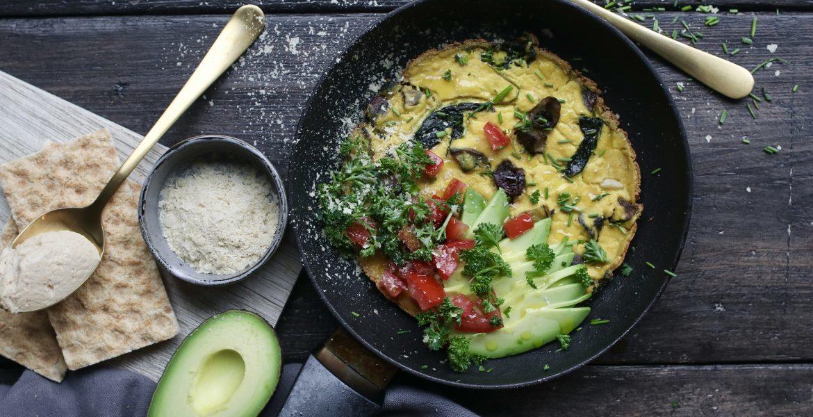 Deze vegan omelet maak je simpelweg van silken tofu, hummus en een theelepel maïzena. Voeg daar vegan smaakmakers aan toe, zoals edelgistvlokken voor een kaasachtige smaak, gebakken spinazie, champignons en je hebt een méga lekker plantaardig ontbijt. Ik testte ook een versie gemaakt met kikkererwtenmeel voor de stevigheid van de omelet, alleen toen werd het meer een wrap en ik wilde persé die ei-achtige structuur. Deze omelet ziet eruit als een omelet van ei, heeft semi dezelfde structuur en hij smaakt ook nog eens top. Hij is super simpel te maken en het enige wat je nodig hebt is geduld. Geduld als in: probeer je omelet niet na twee minuten om te flippen, want dan zal hij breken. Wat op zich niet uitmaakt, want dan heb je gewoon scrambled eggs ;) Gewoon tien minuten op heel laag vuur laten garen en klaar is kees.