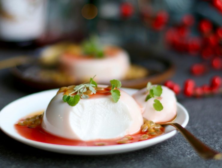 een paar blaadjes Atsina cress – Deze cress smaakt een beetje anijsachtig en combineert top met de smaken in de panna cotta. Als je het niet kunt vinden gebruik je bijvoorbeeld tuinkers ter decoratie.
