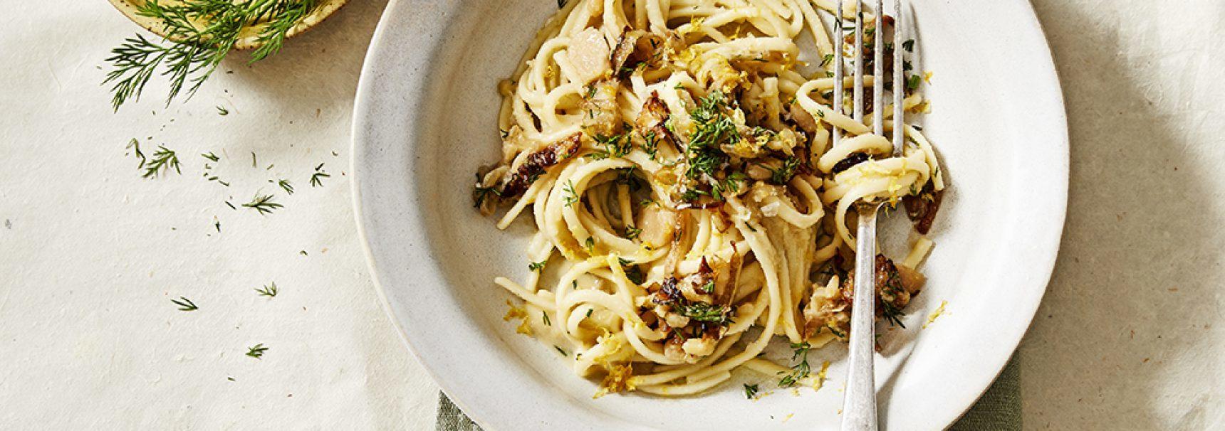 Om dit eetpatroon lekker te maken, heeft Delicious Magazine een aantal heerlijke recepten gemaakt die perfect passen in het 2050 dieet. Dit receptvoor veganistische, gebroken linguine met romige tuinbonensaus en dille is daar één van. En zo maak jij ‘m makkelijk thuis!