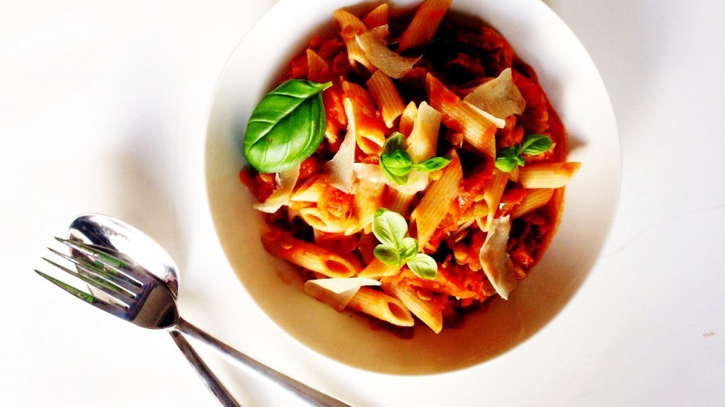 Met dit gerecht zit je altijd goed. Of je nou lekker een avondje thuis eet met vriendinnen of even iets makkelijks op wilt zetten waar je niet al te veel aandacht aan hoeft te besteden. Zo maakte ik dit gerecht laatst om mee te nemen op familieweekend. De eerste avond waarop iedereen aankomt op de locatie wordt er vaak iets makkelijks en meestal ongezonds op tafel gezet. Thuis tijdens het inpakken van mijn tas de saus al gemaakt, eenmaal op locatie even de pasta al dente gekookt en de saus verhit et voila! Een makkelijk, snel en gezond diner voor heel de familie, en ja zelfs mijn sceptische tante wist niet wat haar overkwam. Want toen ik zei dat ik veganistisch zou koken had ze niet gedacht een gerecht voorgeschoteld te krijgen dat zo bom vol smaak zat!