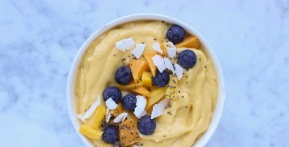 Sanne van Livingthegreenlife.nl zit duidelijk nog met haar hoofd in Bali. Net als ik, was zij afgelopen maand ook op vakantie in Bali. En daar zal ze vast veel mango's gegeten hebben! Die zijn zo lekker hier... Dus daarom een zomers mango ijs receptje. Uiteraard vegan, zoals we van Sanne gewend zijn.