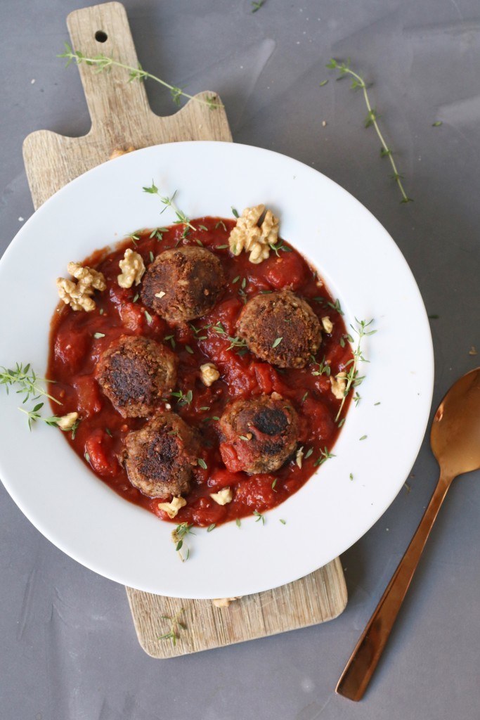 Onder het mom van ‘een dagje zonder vlees is beter voor je gezondheid en het millieu’ heb ik vandaag een heerlijk vegetarisch recept voor jullie. Deze vegetarische gehaktballetjeszijn gemaakt van gebakken champignons, kikkererwten en verse kruiden. Ze smaken echt SUPER lekker in deze snelle tomatensaus met balsamico en als je er pasta doorheen doet heb je binnen no time een heerlijk en gezond pastagerecht op tafel staan.