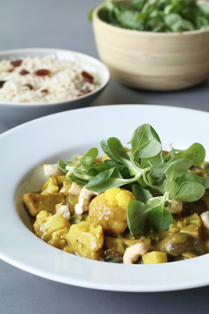 Vroeger at ik altijd kip kerrie bij mijn mams en dat kwam nooit uit pakjes en zakjes, maar altijd uit eigen hand. En waarom ook niet? Het is zo super simpel om zelf kip kerrie te maken. Ik las alleen laatst een artikel over kip uit de supermarkt en daar werd ik niet heel blij van dus besloot ik dit keer een vegetarische variant te maken met lekker veel groenten. En zonder kip, dus eigenlijk mag ik het geen kip kerrie noemen ;) Afijn, een lekkere en gezonde kerrie met een overload aan groenten. Met om het extra lekker te maken een handje rozijnen door de rijst (jullie weten dat ik gek ben op een mix van hartig en zoet) en nootjes on top om het af te maken :D