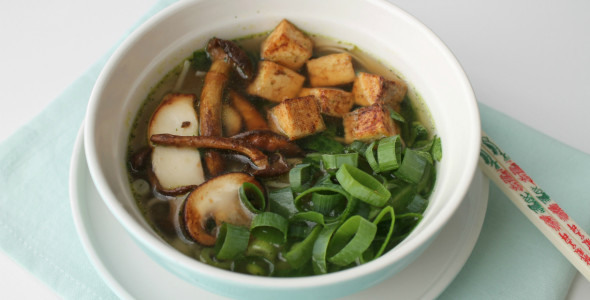 Ramen is een Japanse noodlesoep die vaak wordt gemaakt in combinatie met vlees of vis. Het is een typisch Japans gerecht, en er wordt vaak veel tijd besteed aan het trekken van de bouillon. Dat kan makkelijker! Ik maakte een simpelere vega versie met paddenstoelen en tofu, en die beviel erg goed! Door deze twee ingrediënten is deze vegetarische noodlesoep toch voldoende vullend en geschikt als volledige avondmaaltijd. Probeer als je kunt boekweit (soba) of bruine rijst-noodles te vinden. Ik kon alle ingrediënten voor deze soep gewoon bij mijn plaatselijke grote supermarkt vinden. Als jouw supermarkt geen paksoi in het assortiment heeft kun je deze ook vervangen door andere groenten zoals babyspinazie. Eigenlijk kun je eindeloos variëren, gebruik gewoon wat je lekker vindt!