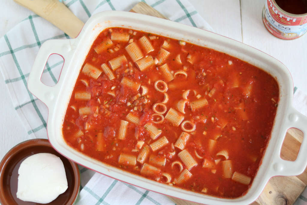Het ideale aan deze vegetarische pasta ovenschotel is, dat alle ingrediƫnten ongekookt de oven in gaan. Ook ideaal voor tieners met werkende ouders. Er kan eigenlijk niks mis gaan, mits de oventemperatuur klopt en de tijd in de gaten wordt gehouden.