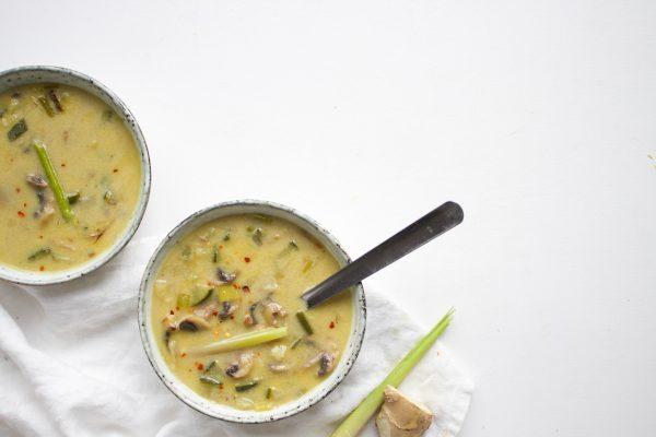 Wat deze soep zo lekker maakt, is de citroengras, gember en een beetje pit van de rode peper. Door de kokosmelk is de soep een beetje romig, maar toch licht en fris. Een heerlijke soep voor in de lente!