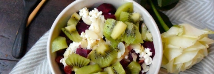 Als het je persoonlijke doelstelling is om meer groenten te eten, begin er dan direct je dag mee. Sommige groenten, zoals bieten, zijn ideaal om in je ontbijt te proppen. Rasp ze en meng ze met havermout, gebruik bieten in een smoothie of maak er een breakfast bowl van met geitenkaas en kiwi. Dat laatste klinkt misschien verrassend, maar zoet (biet), zoetzuur (kiwi) en romig (geitenkaas) gaan wonderwel goed samen.