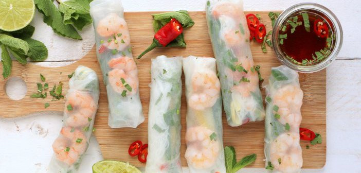 Summer is coming en na de afgelopen mooie dagen heb ik er al helemaal zin in! Ik leef echt op als het zonnetje schijnt en ben het liefst de hele dag buiten te vinden. En ondanks dat ik minder zin heb om de keuken in te duiken als het warm is, heb ik nog steeds altijd zin in goed eten... Dat blijft hoor, al zijn mijn maaltijden wel wat lichter en hou ik ervan om een beetje te snacken in plaats van een hele maaltijd op tafel te zetten. Deze Vietnamese springrolls met garnalen zijn zo'n perfecte zomerse snack en zijn ook nog eens super makkelijk klaar te maken!