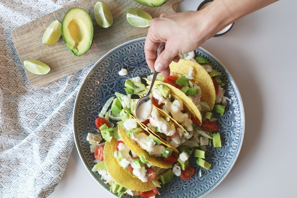 Als ik mijn lover vraag wat hij het liefst wil eten is zijn antwoord meestal springrolls of taco’s. Met de keuze voor taco’s ben ik altijd blij, want ik heb niet altijd zin om een berg springrolls te rollen ;). Taco’s zijn super makkelijk te maken en onwijs lekker wanneer je ze vult met verse ingrediënten. Een berg gehakt met saus uit pak komt mijn keuken niet in. Ik kies in plaats daarvan liever voor knapperige ijsbergsla, avocado en bijvoorbeeld kabeljauwfilet. Maak de taco’s af met geblancheerde tomaatjes, een lekkere homemade limoen mayonaise en je hebt binnen no timeeen lekkere en gezonde maaltijd op tafel. Dit gerecht is trouwens ook perfect voor etentjes, want zo’n grote schaal met gevulde taco’s staat mooi op tafel. Of zet bijvoorbeeld de ingrediënten in kleine bakjes op tafel en laat iedereen zijn eigen taco vullen.