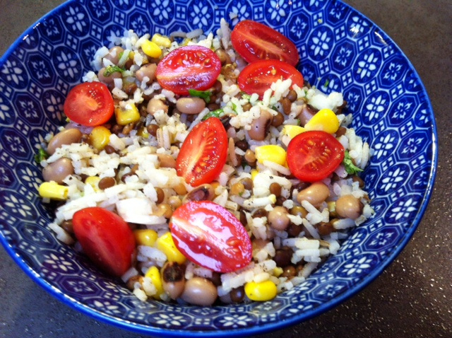 Deze lunchsalade is heerlijk voedend en eiwitrijk door de combinatie van peulvruchten en zilvervliesrijst, de citroen zorgt voor een verfrissende touch. De salade is gemakkelijk vooraf te bereiden en in de koelkast te bewaren dus een ideale lunch to go. Een beetje rijst over van het avondeten? Bij deze heb je de ideale bestemming gevonden ;).