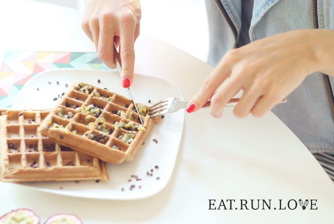 Een tijdje geleden wilde ik persé een wafelijzer, terwijl ik er nu helemaal geen gebruik van maak. Daar moest dus verandering in komen! Ik bedacht me ineens dat het wel weer eens lekker was om met wafels te ontbijten in plaats van pannenkoeken en omdat het zomer is had ik zin in wafels met een zomerse topping! Het werden dus wafels met passievrucht en wat cacao nibs. Deze wafels zijn heel erg snel klaar, dus kun je ook prima door de weeks eten.