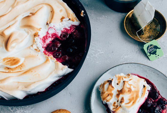 Ik snap dat het uitdagend klinkt, eerst een suikersiroop maken en deze vervolgens kloppen met eiwitten. Maar eigenlijk is het heel makkelijk. En als je het echt heel ingewikkeld vind, kan je de suikersiroop ook achterwege laten en de suiker beetje bij beetje toevoegen aan de geklopte eiwitten. Dit noemen ze de Franse methode. Zelf ben ik vooral fan van suikerstroop methode (ook wel Italiaanse meringue) genoemd, omdat deze wat steviger is. De bovenkant wordt iets krokant door de grill (of door een gasbrander), en het schuim blijft lekker gooey. Yum! Ik gebruik trouwens gepasteuriseerd eiwit, dit kan je in de supermarkt kopen en is wel zo veilig.