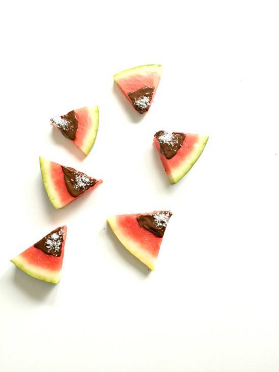Voor wie het niet heet genoeg kan zijn, is er goed nieuws: het wordt weer tropisch warm (al viel het weer de afgelopen dagen ook best mee, toch?)! Tijd voor het verzamelen van recepten voor lekkere zomerse hapjes, zoals zelfgemaakte limonade of ijsjes. Een stuk watermeloen is ook heerlijk verfrissend tijdens warmere dagen. In dit recept van Food Love and Happiness wordt watermeloen gecombineerd met chocolade en kokos. Mmmmm laat de zon maar komen!
