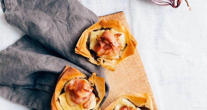 Deze filodeegcups met rode ui zijn makkelijk om te maken. Maar gebruik wel vers filodeeg. Het filodeeg uit de vriezer is een regelrechte ramp. Hier valt niet mee te werken, want het scheurt bij iedere aanraking uit elkaar. Dus tip van mij, gebruik altijd vers filodeeg. Je kunt het kopen bij de Turkse supermarkt. Dat werkt een stuk makkelijker. De gekarameliseerde ui is lichtzoet van smaak. Superlekker in combinatie met de zoute brie en bacon. Kortom, een heerlijk hapje om het nieuwe jaar mee in te luiden.
