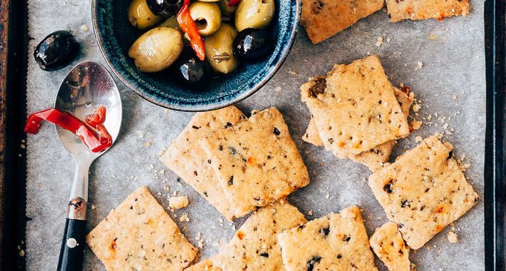 Ingrediƫnten voor 40 hartige koekjes 200 gr (patent)bloem 45 gr havermoutvlokken 70 gr olijvenmix zonder pit 2 eieren 100 gr (ongezouten) boter 70 gr geraspte oude kaas 0,5 tl zout