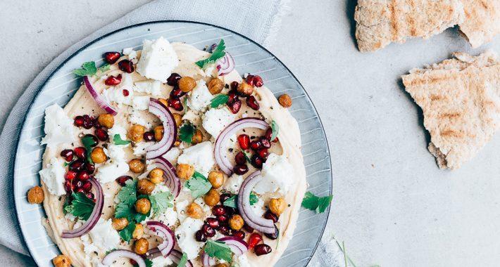 De toppings op de hummus geven net die extra bite. De kruidige smaak van de geroosterde kikkererwten, gecombineerd met de frisse granaatappelpitjes en het zoutige van de feta is heerlijk bij elkaar. Je kunt natuurlijk ook voor andere toppings kiezen. Maar ik moet eerlijk bekennen dat ik deze combinatie toch wel het lekkerst vind. De smaken passen goed bij de romige hummus en maken het net even wat spannender.