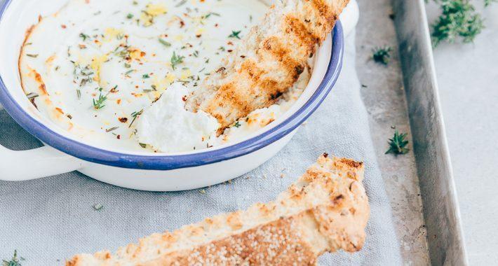Ingrediënten voor 1 portie 200 gr geitenkaas 3 el roomkaas 1 teentje knoflook Takje verse tijm Takje rozemarijn 0,5 tl chili Rasp van een halve citroen (Oud) brood