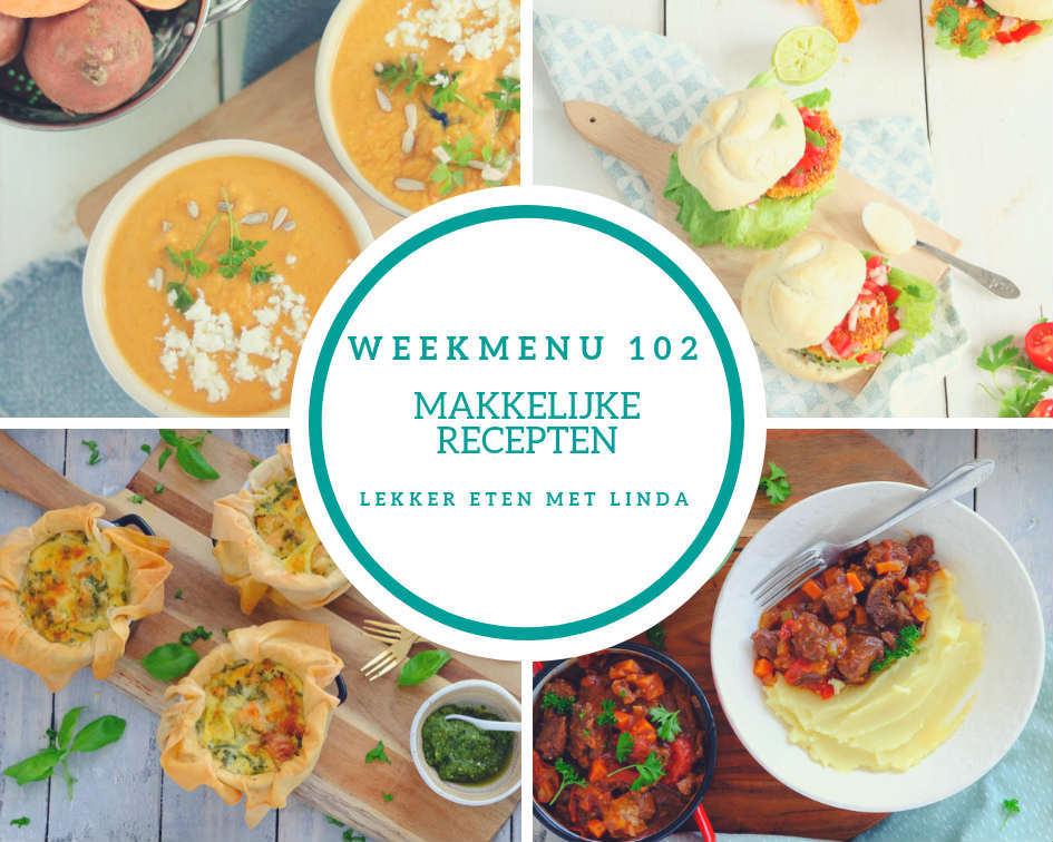 Voor jullie heb ik natuurlijk wel een planning klaarstaan. Maandag is vega met een zoete aardappel soep. Daarnaast staat er een vis recept op het menu en ook stoofvlees. Mocht je tijd hebben dan kun je de soep en het draadjesvlees misschien het weekend al maken. Dat scheelt je van de week weer tijd. De krokante kipburgers zijn een aanrader, net als het dessert op zondag.