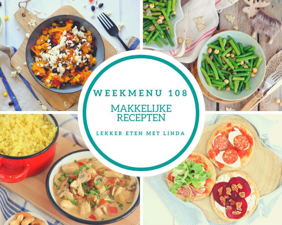 Het weekmenu heb ik van de week al even voor jullie gemaakt. De nieuwe week start altijd vegetarisch. Bij ons zal op dinsdag standaard een vega maaltijd (zonder vleesvervangers) op het menu staan. Door de Week zonder Vlees die voor mijn dochter een maand zonder vlees is geworden, ontstonden er allerlei gesprekken aan tafel. Tijdens mijn afwezigheid (Malaga) hadden ze al gesproken om een vaste vega dag in te plannen. Een paar jaar geleden aten we vaker per week vega, maar daar is de slob een beetje ingekomen. Super leuk dat we dus weer oppakken en ik heb echt zin om nieuwe recepten te bedenken.