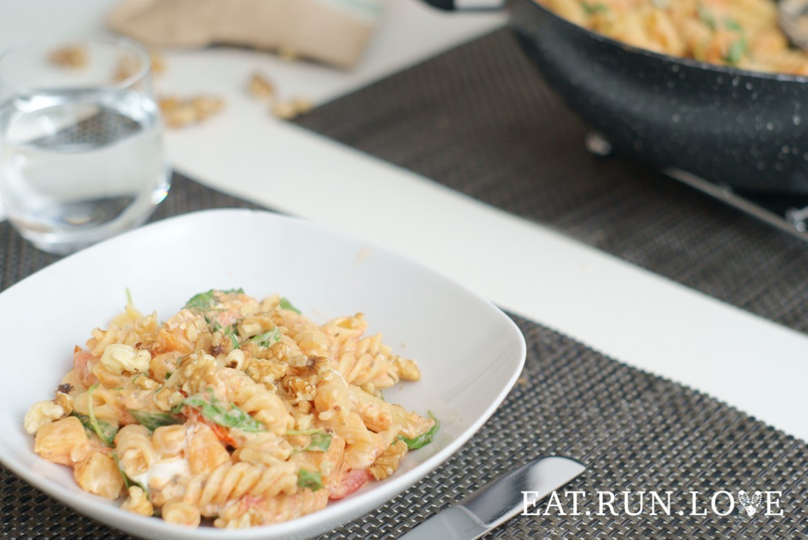 Yes, de pompoenen liggen weer volop in de winkels. Eén van mijn favoriete herfstgroenten. Ik kocht een flespompoen van bijna 2kg bij de Lidl voor maar €1,29. Daar kunnen we dus ongeveer vier keer van eten. En daar word ik blij van hoor. Overigens is dit gewoon een dikke #nospon, maar wel een hele goede tip om even snel naar de Lidl te rennen dus! Wat ik allemaal maak met pompoen? Wat niet; pasta, curry, soep, salade, quiche, je kunt er alle kanten mee op. Vandaag plaats ik weer eens een recept voor pasta met pompoen. Eentje die ik voor het eerst maakte vorige week, maar zo goed smaakte dat ik hem deze week weer op het menu zette om hem ook te kunnen fotograferen.