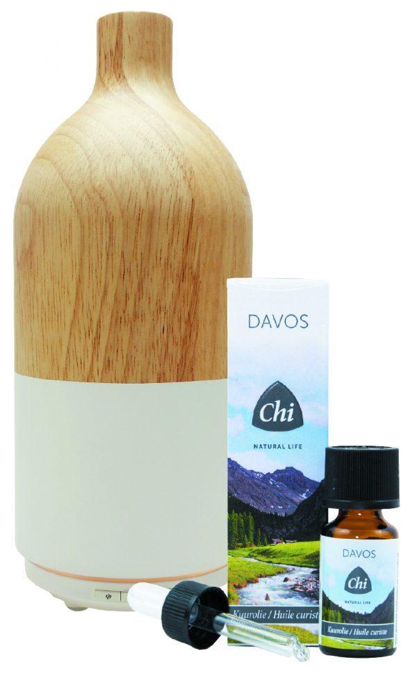 De diffuser bevochtigt en zuivert de lucht. Vul je hem met Davos-kuurolie, dan verander je je huis in een kuuroord. Deze kuurolie werkt als een natuurlijke luchtverfrisser en geeft je meer lucht. De verdamper is makkelijk instelbaar: van een lichte verneveling tot een intervalfunctie. De fijne waterdamp komt als een mist uit de houten aromaverstuiver. Daarbij ziet de verstuiver er ook nog eens mooi uit!