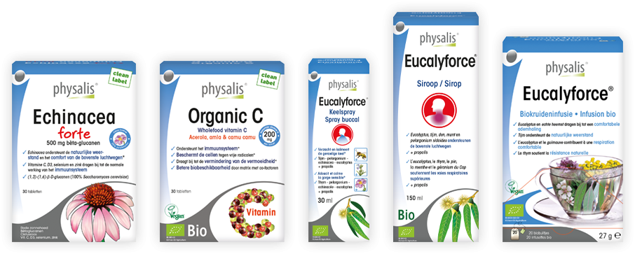 - Eucalyforce Keelspray (30ml) – met tijm, cistusroos, echinacea en propolis – verzacht en kalmeert de gevoelige keel.