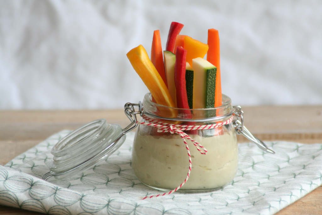 Met de hitte van de afgelopen week, heb ik weinig zin om te koken, laat staan een warme prak eten naar binnen te werken. En toch wil ik gezond blijven eten en mijn vitamines en mineralen binnen krijgen. En dat geldt zeker ook voor de rest van het gezin. Een gezonde snack met een groentedip is dan ideaal.